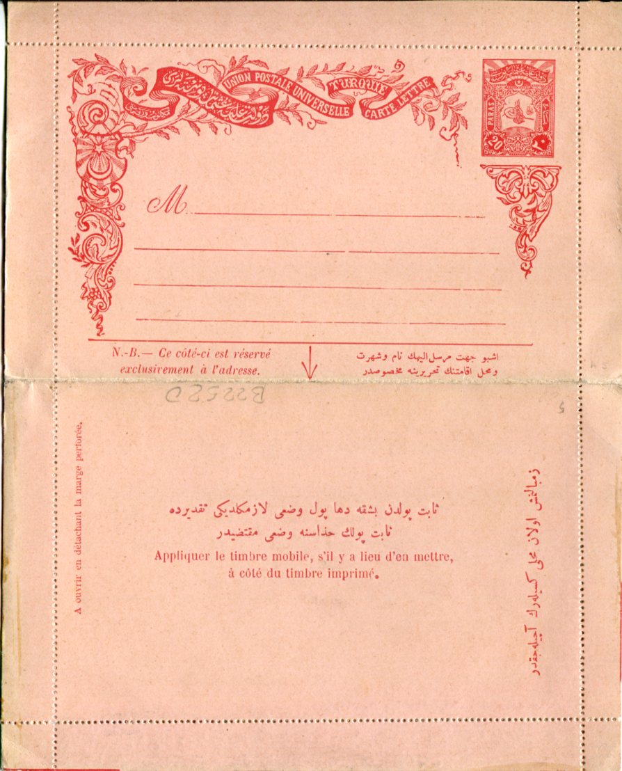 Turkey: 1905 unused 20pa lettercard. Isfila AN85