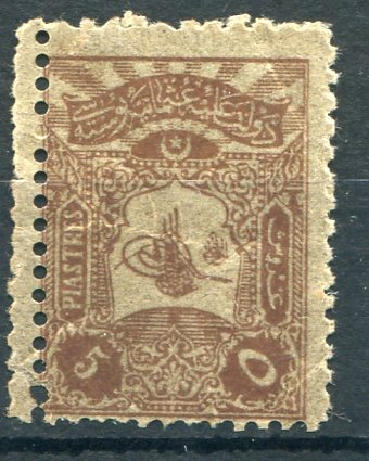 Ottoman: 1905 (1 September). Tughra with Rays definitive issue 5pi mint o.g. with double perf. variety. Isfila 233 DE06