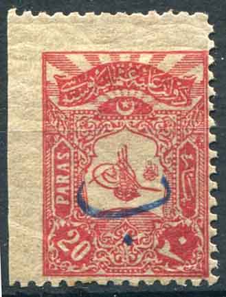 Ottoman: 1905 (1 September). Tughra with Rays definitive issue overprinted for foreign countries use 20pa mint o.g. part imperf. Isfila 246 DE17