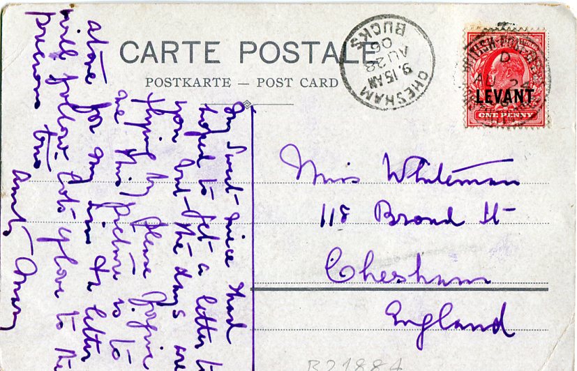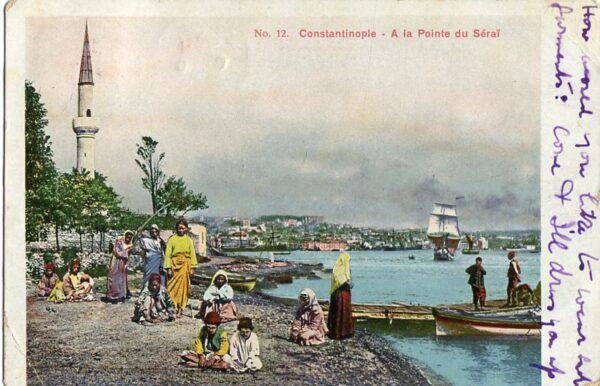 British Levant – Turkey: 1906 (24 August). Postcard to England titled ‘Constantinople – A la Pointe du Serai’ franked with LEVANT overprinted 1d KEVII and tied by BPO Constantinople datestamp and 28 August Cheshire arrival cds.