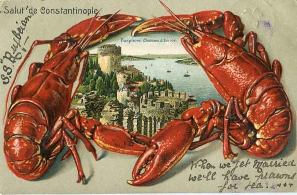 British Levant: 1906 (3 March). Embossed postcard titled ‘Bosphore Chateaux d’Europe’ to England franked with LEVANT opt 1d GB stamp and tied b dispatch cds and S.S. RUGBEIAN ship cachet and 7 March Cleveland arrival cds.