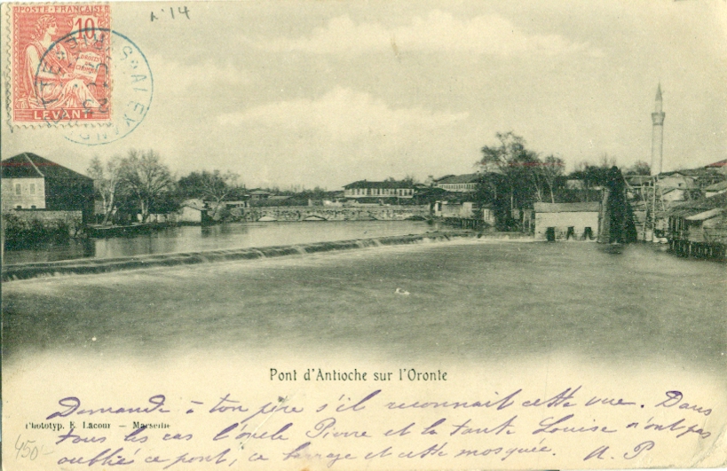 French Levant: 1906 (23 November) picture postcard titled ‘Pont d’Antioche sul l’Orole’ to France franked with 10c Levant stamp and tied by ALEXANDRETTE SYRIE date stamp. Scarce Antakya card