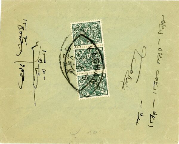 Iran: 1906 cover from Kachan to Yezd with its contents franked with strip of three 3ch.
