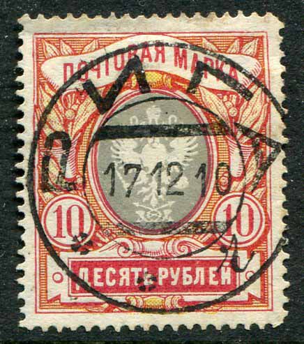 Russia: 1906 vertically laid paper 10r struck by superb RIGA (Latvia) 17.12.10 datestamp.