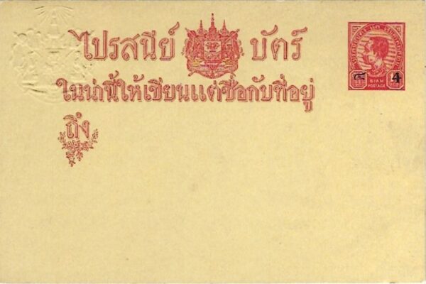 1906 Thailand 4a on 1 1/2a Postal Card quantity