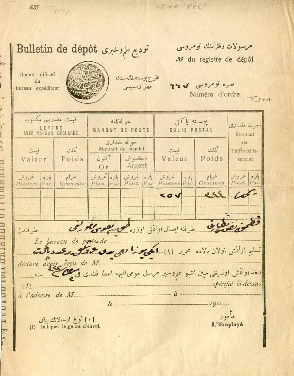 Ottoman Turkey: 1906 telegraph struck on arrival by TELGRAF ve POSTAHANE-I TOSYA 303 (vilayet Kastamonu, A&P type 3, RR) negative seal.