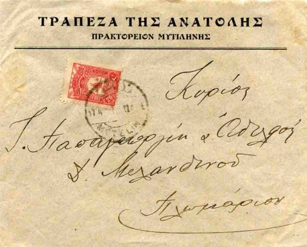 Ottoman Greece: 1907 (17 April). Commercial cover from Mytilene [Midilli, Mitilini] franked with 20pa and tied by MIDILLU – METELIN (A&P type 7) date stamp.