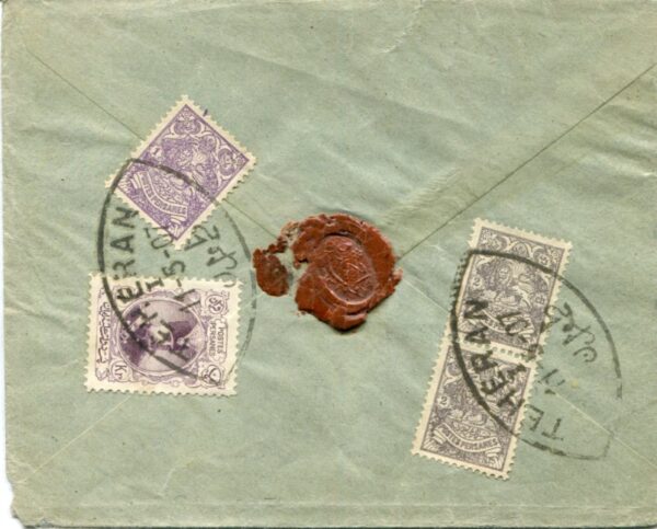 Iran: 1907 (11 May). Cover from Teheran franked with 1ch, pair of 2ch and 1kr Mozaffer-eddin Shah Qajar portrait definitive stamps tied by oval Teheran datestamps.