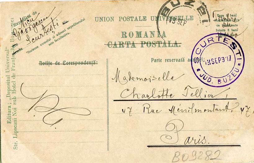 1907 Romania Postcard SCURTESTI BUZEU to France