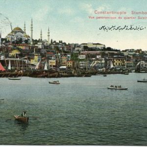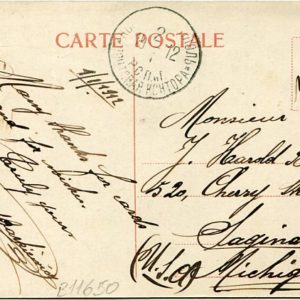 Russian Post in China: 1907 overprinted in red 14k on each corner unused postal stationery envelope (145 x 120 mm). Mi. U3B