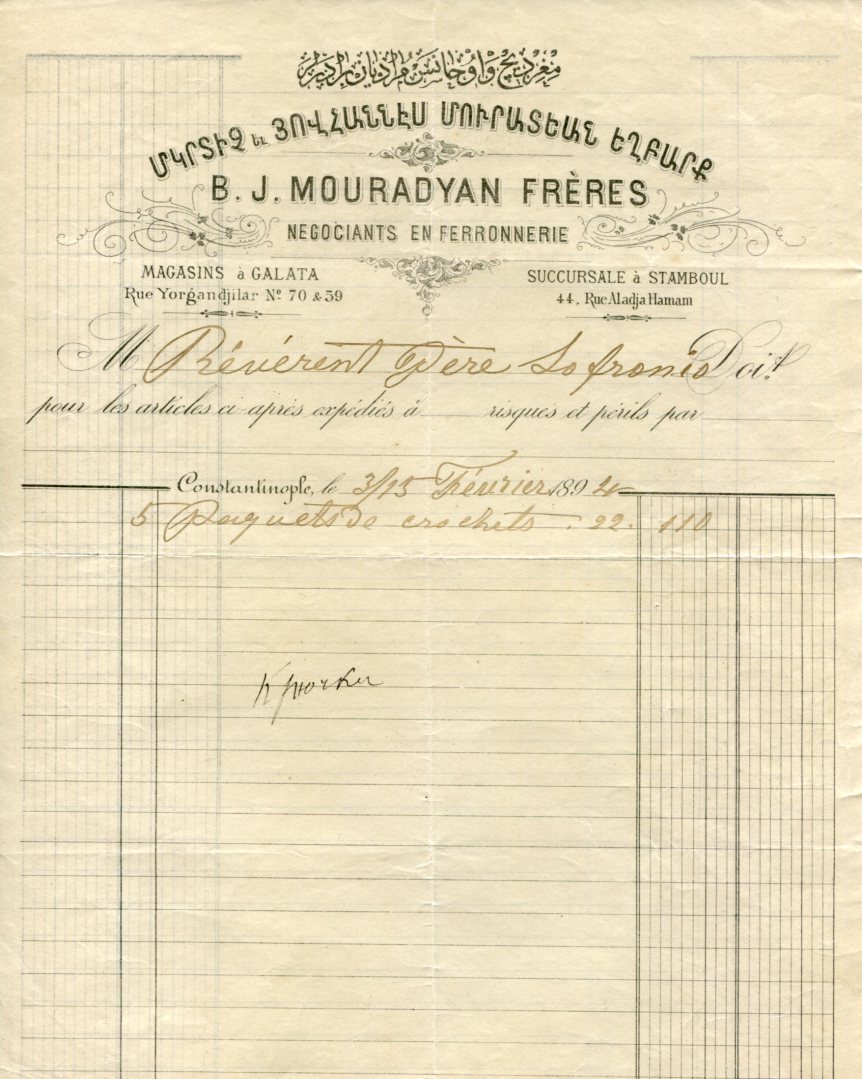 1907 B.J. Mouradyan Galata – Constantinople imprinted invoice.