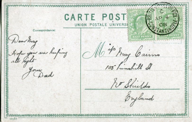 1908 British Levant Istanbul KEVII 1/2 Postcard