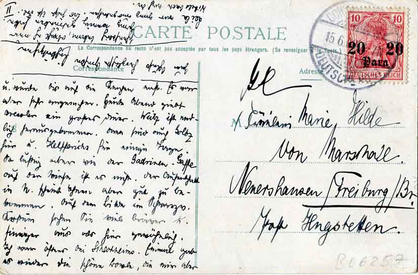 German Levant: 1908 (15 June). Picture postcard of opening of the Eregli railway line by Turkan Pasha on 1905 franked with 20pa surcharged 10pf German stamp tied by German PO in Istanbul datestamp.