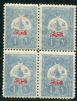 1908 Turkey Sultan Hamid 1pi Printed Matter Block of 4 ** / *