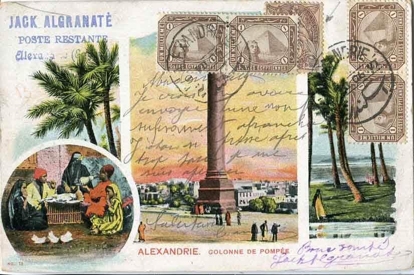 Egypt: 1909 (9 July). Postcard of Alexandria titled ‘Colonne de Pompee’ to Belgium franked with four 1m New Currency and French Post Office in Alexandria 2m tied by bilingual Alexandrie datestamps. Reverse 15 July Courtrai arrival cds. Scarce mix franking.