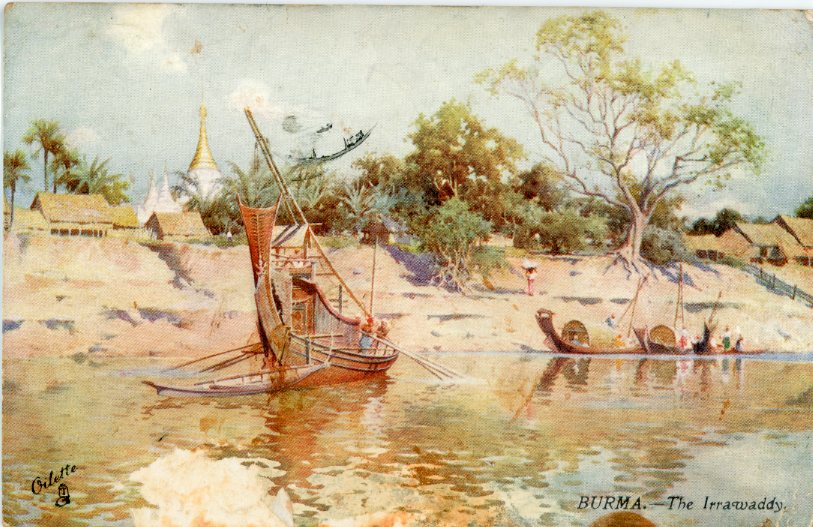 India: 1909 (29 July). Watercolour postcard of Burma, Irrawaddy to Scotland franked with 1a. tied by Calcutta datestamp, 31 July Aden Sea Post Office transit and 15 August Portobello arrival cds’s, redirected same day to Lochgoilhead.