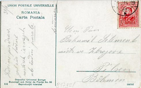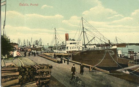 Romania: 1909 (1 January). Postcard of Galati Port (ed. Saraga) to Pilzen, Czech Republic franked with 10b and tied by part datestamp.