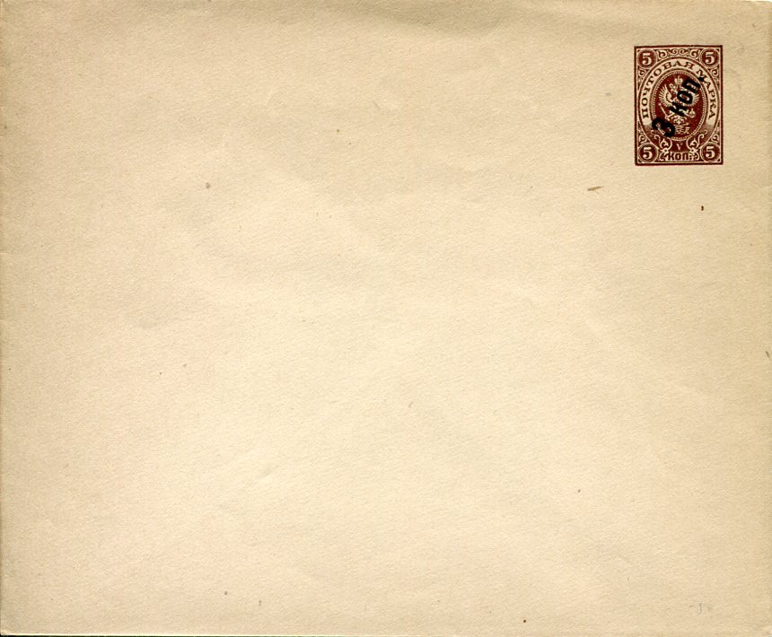 Russia: 1909 issue 3 KOΠ. surcharged on 5k unused postal stationery envelope.