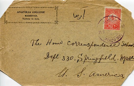 1909 Turkey Merzifon Anatolia College to USA