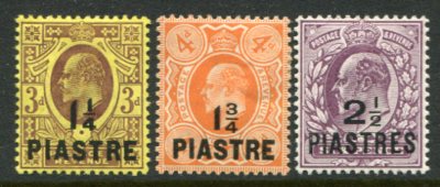 British Levant: 1910 (24 January). Stamps of KEVII surcharged in Turkish Currency mint o.g. set. Sg. 22/24. *
