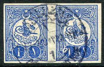 1910 Turkey Sultan Reshad 1pi Ultramarine Imperf Used Pair