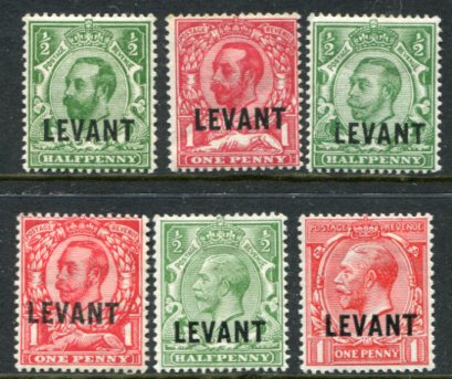 British Levant: 1911-13. Stamps of KGV overprinted LEVANT at Somerset House mint o.g. set. Sg. L12/L17. *