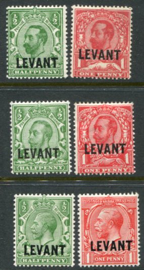 British Levant: 1911-13. Stamps of KGV overprinted LEVANT at Somerset House mint o.g. set of six. Sg. L12/L17. *