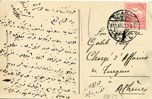 Hungary – Romania: 1911 (12 August). Postcard of Brasov addressed to advisor and under secretary Galib Kemali Bey of the Ottoman Empire Embassy in Athens, Greece franked with 10f Kingdom of Hungary Turul stamp tied by Brasso datestamp.