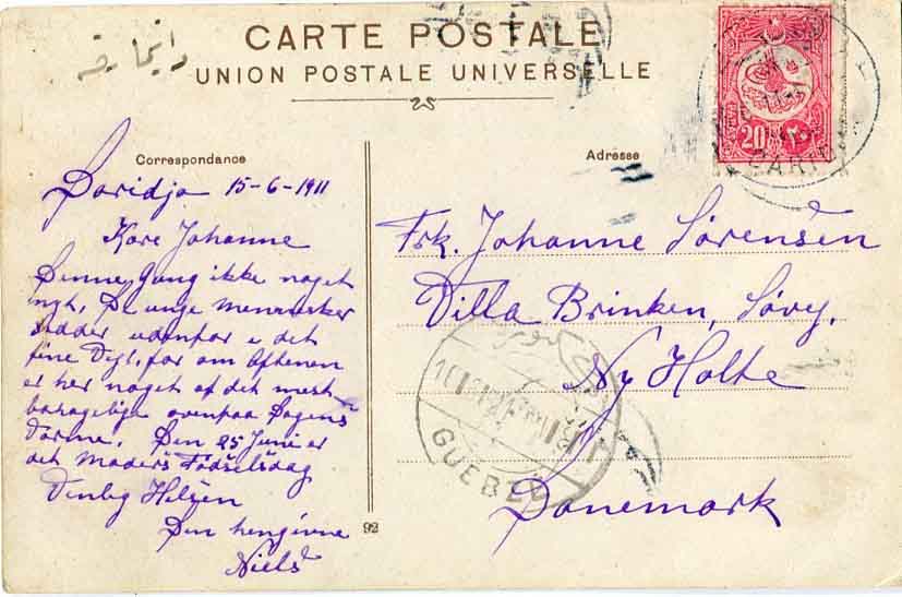 Ottoman Turkey: 1911 (15 June). Picture postcard titled ‘Kavak – Artillerie de forteresse’ to Denmark franked with 20pa of 1909 issue and tied by DARIDJA (A&P type 3, R) datestamps and GEGBUZE-GUEBZE (A&P type 4, R) transit cds.