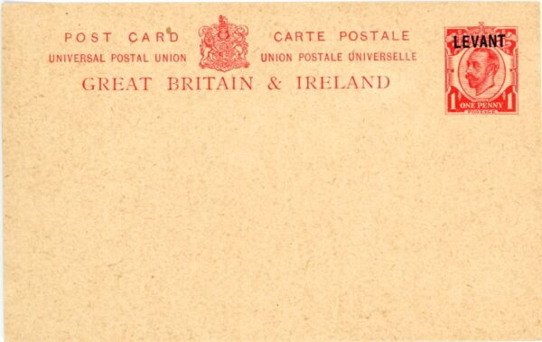 British Levant: 1912 LEVANT overprinted KGV 1d. postal stationery card. GBOS LC7
