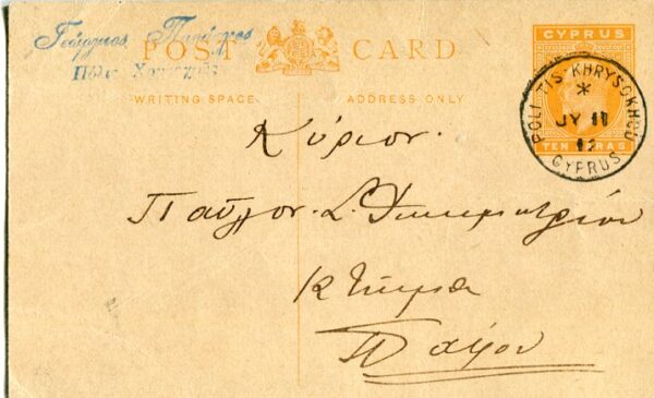 1912 Cyprus Poli Crysochous 10pa Postal Card