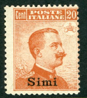 Greece – Dodecanese Islands – Italian Occupation: 1912 (1 December)-22. Stamps of Italy overprinted SIMI 20c. without watermark mint o.g. Sg. 9L. *