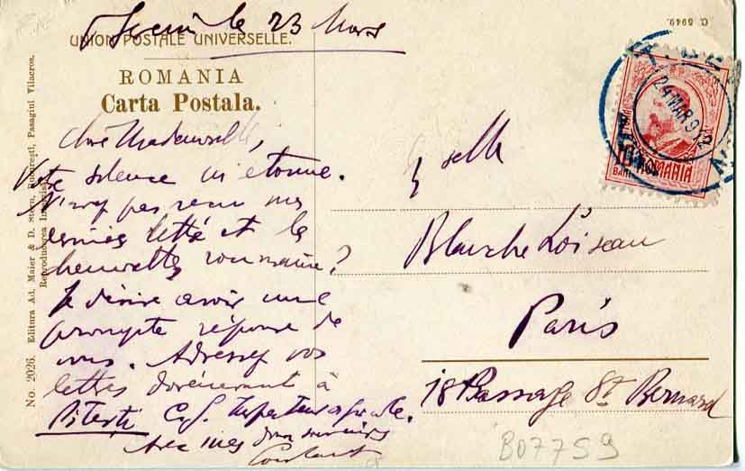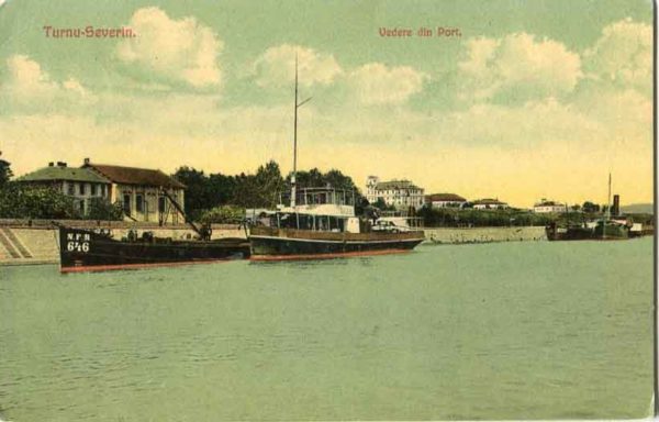 Romania: 1912 (24 March). Postcard of Turnu Severin Port to France franked with 10b and tied by T. Severin datestamp. ed. Maier & Stern #2026