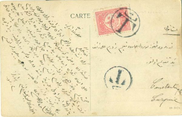 Ottoman Turkey: 1912 picture postcard of Izmir titled ‘Les Quais La Belle-Vue – SMYRNE’ to Istanbul franked with 10pa of 1909 external mail stamp. Usage of this stamp were valid only to abroad therefore it has been cancelled by pen and taxed with 20pa of 1909 issue (double the open correspondence rate), tied by ‘T’ postage due cachets.