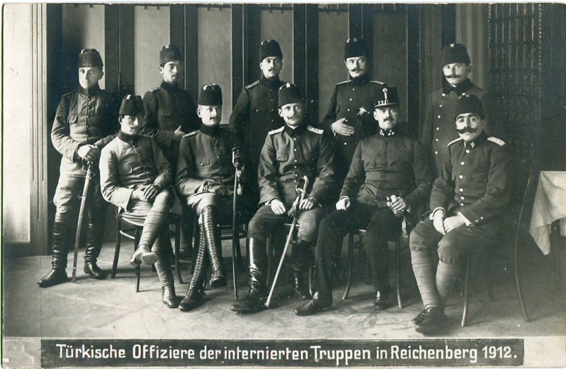 Turkey: Photocard titled ‘Türkische Offiziere der internierten Truppen in Reichenberg 1912’ (today Liberec, Czech Republic).