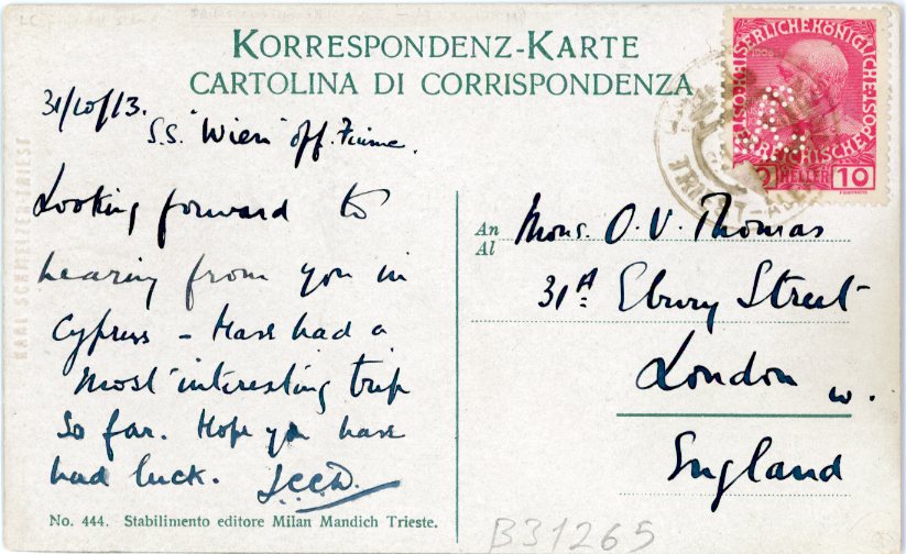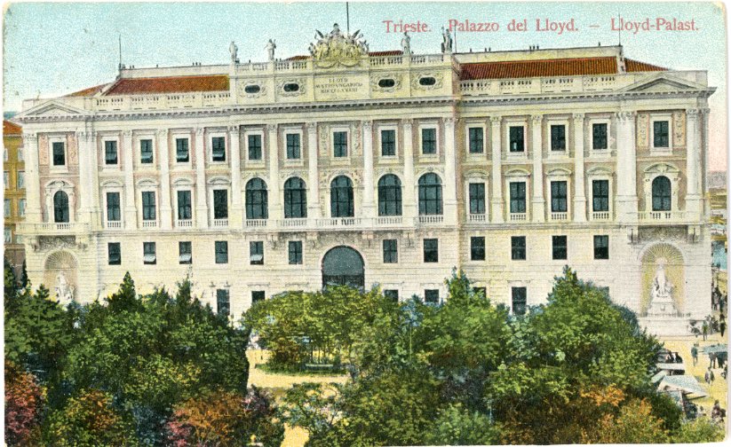 Austria: 1913 (March). Company postcard titled ‘Österreichoscher Lloyd D. Palacky’ to England franked with pair of 5h tied by faint PALACKY OSTERR. LLOYD (Tch. 207) datestamp.