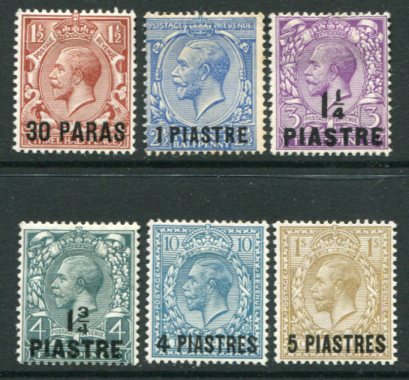 British Levant: 1913 (April)-14. Stamps of KGV surcharged with Turkish currency mint o.g. set. Sg. 35/40. *