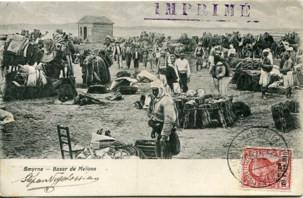 1913 Italian Levant Smyrna Melon Bazaar Postcard