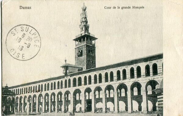Ottoman Syria: 1913 postcard titled ‘Damas. Cour de la grande Mosquee’ to France franked with 20pa and tied by Damas 1 datestamp and arrival cds.