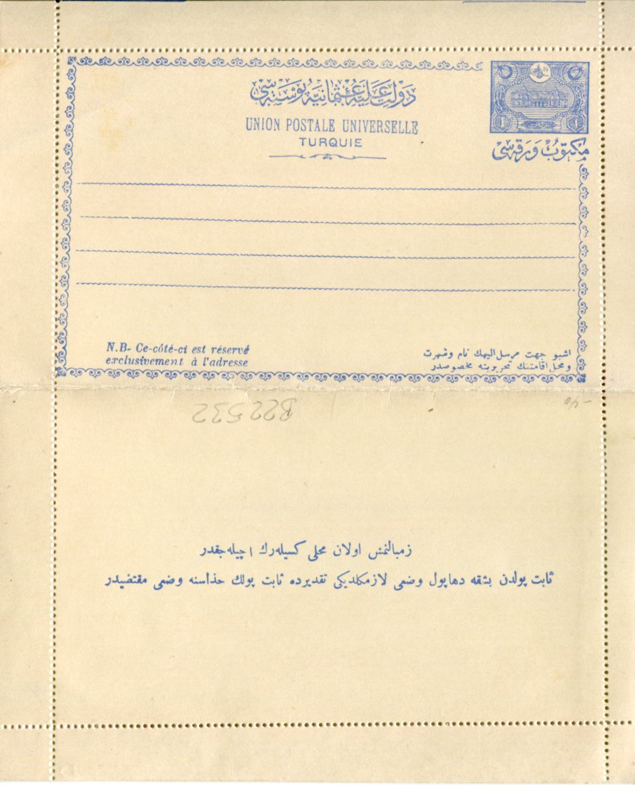 Turkey: 1913 unused 1pi lettercard. Isfila AN117