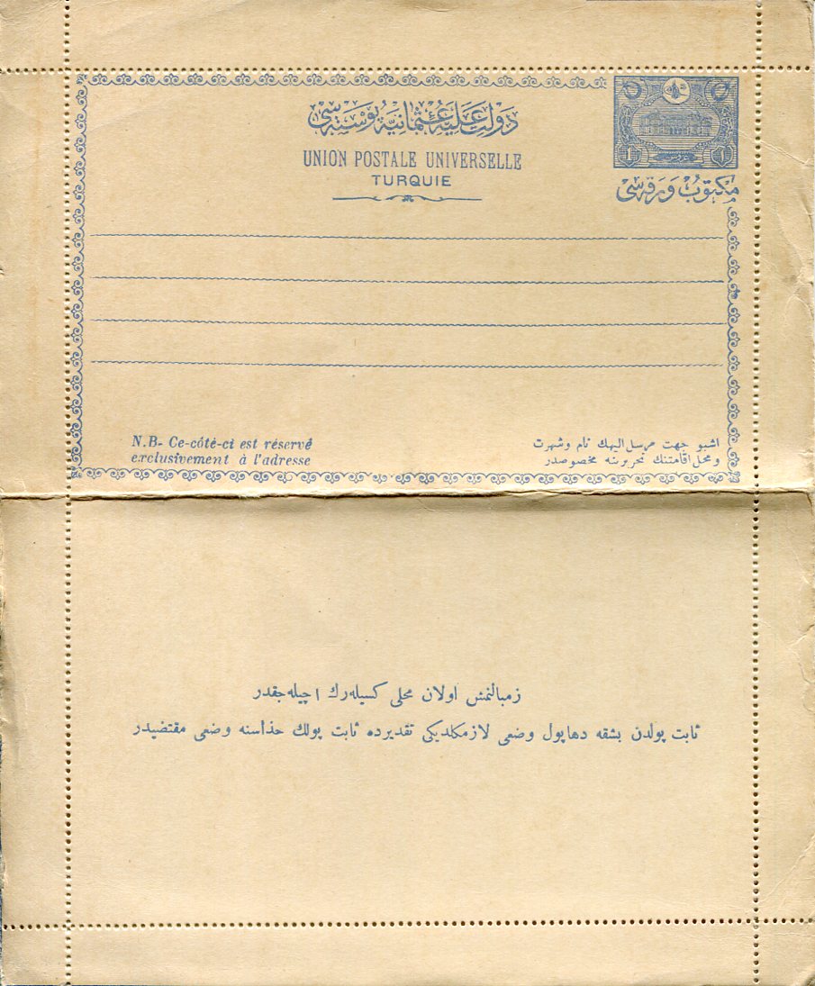 1913 Turkey 1pi Unused Lettercard