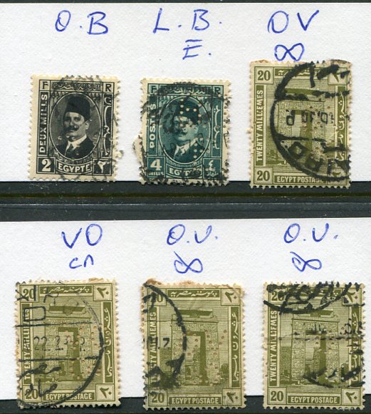 1914-27 Egypt 5 Perfin Stamps quantity