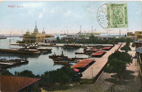 Egypt: 1914 (13 March). Postcard of Port Said to Austria franked with 2m Egyptian stamp tied by BOHEMIA OE. LLOYD datestamp. Acceptance of Egyptian stamp is unrecorded by Tchilinghirian.