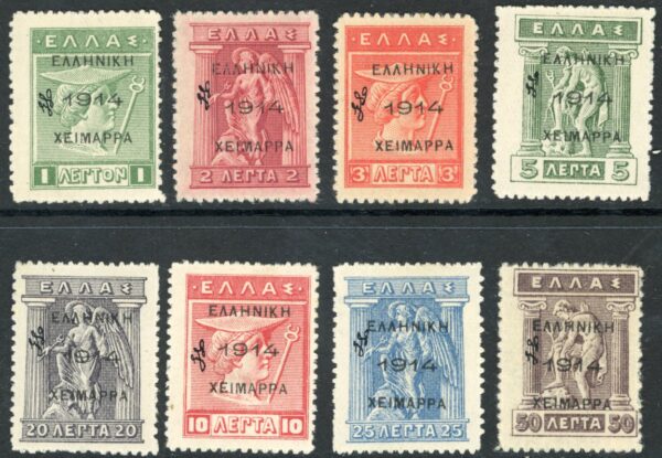 Epirus – Provisional Government: 1914 (24 August). Greek Chimarra 1914 overprinted with initials S.S. mint o.g. set. All signed. Hellas 68/75, Sg. 31/38 *