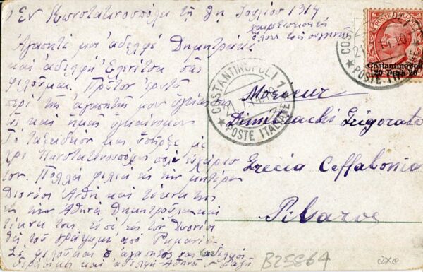Italian Levant: 1914 (21 July). Postcard titled ‘Constantinople. Des bohemiennes en conversation’ to Pylaros, Ionian Islands franked with 20pa on 10c Constantinopoli surcharged Italian stamp tied by CONSTANTINOPOLI 1 * POSTE ITALIANE datestamps.