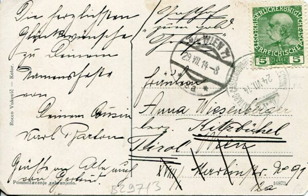 Montenegro: 1914 (24 July). Postcard titled ‘Teodo – Tivat’ (ed. Rocco Vukovic) to Austria franked with 5h and tied by CATTARO – CASTELNUVO [60] KOTOR – ERCEGNOVI (Tch. 350) government operated shuttle service datestamp.