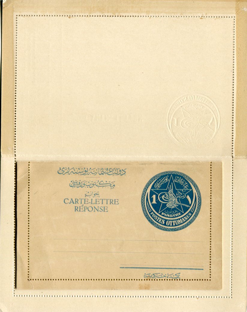 Turkey: 1914 unused 1pi lettercard with reply part. Isfila AN132