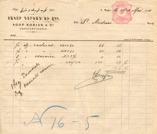 1914 Turkey Istanbul Armenian Merchant Invoice