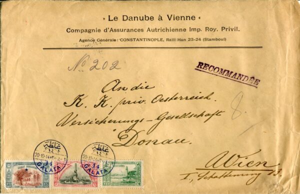 1914 Turkey Istanbul Insurance Co to Vienna