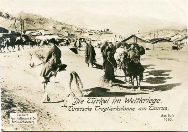 Turkey: circa 1914 large photocard in German showing Turkish Military Animal Caravan at Taurus Mountains. 172 x 122 mm.